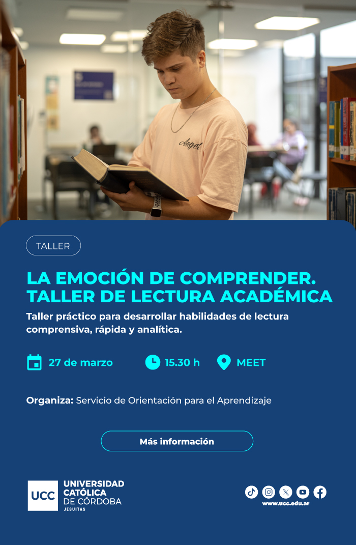Se trata de un taller práctico orientado a desarrollar habilidades de lectura comprensiva, rápida y analítica, destinado a acompañar a los estudiantes en el fortalecimiento de sus trayectorias académicas.